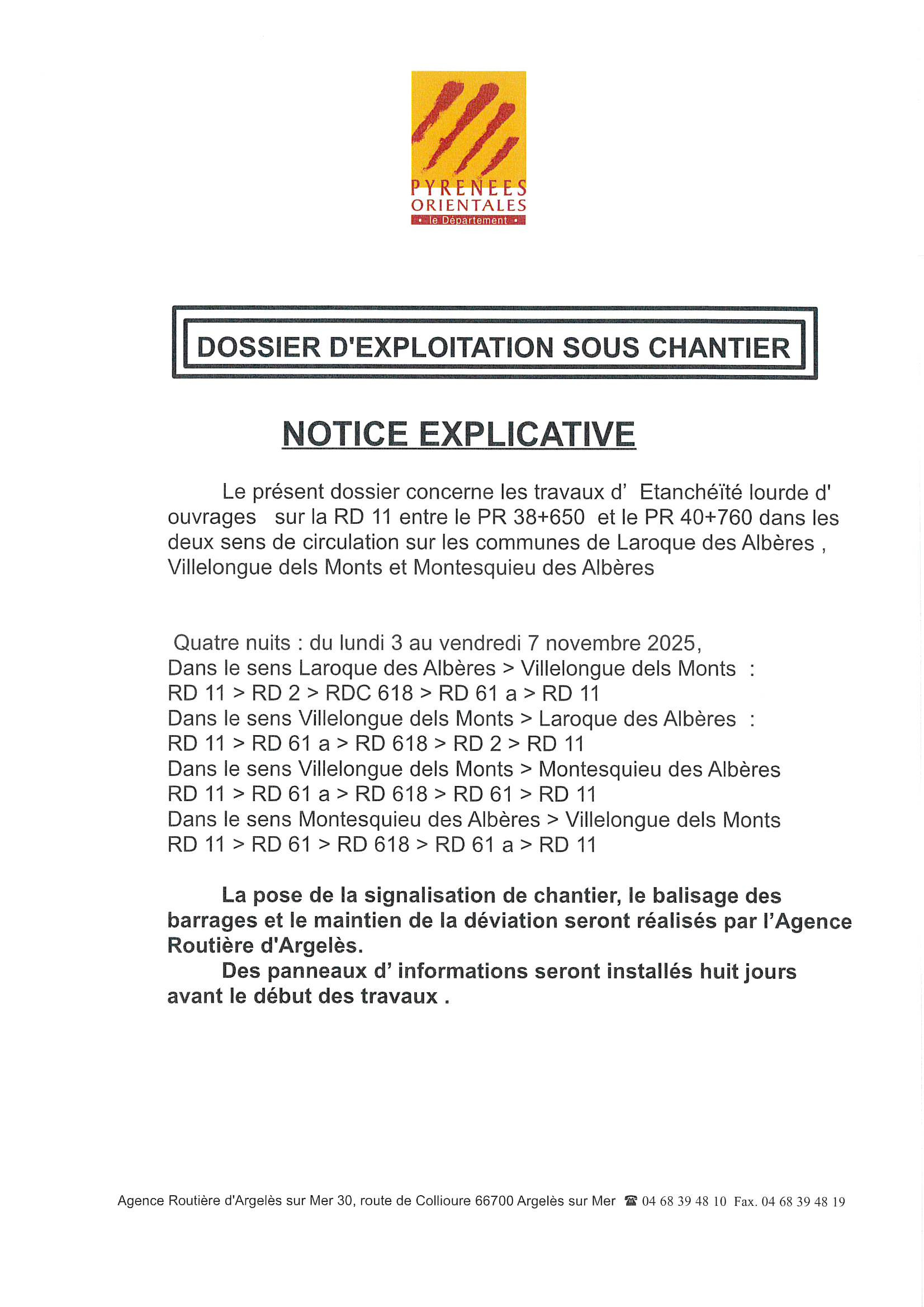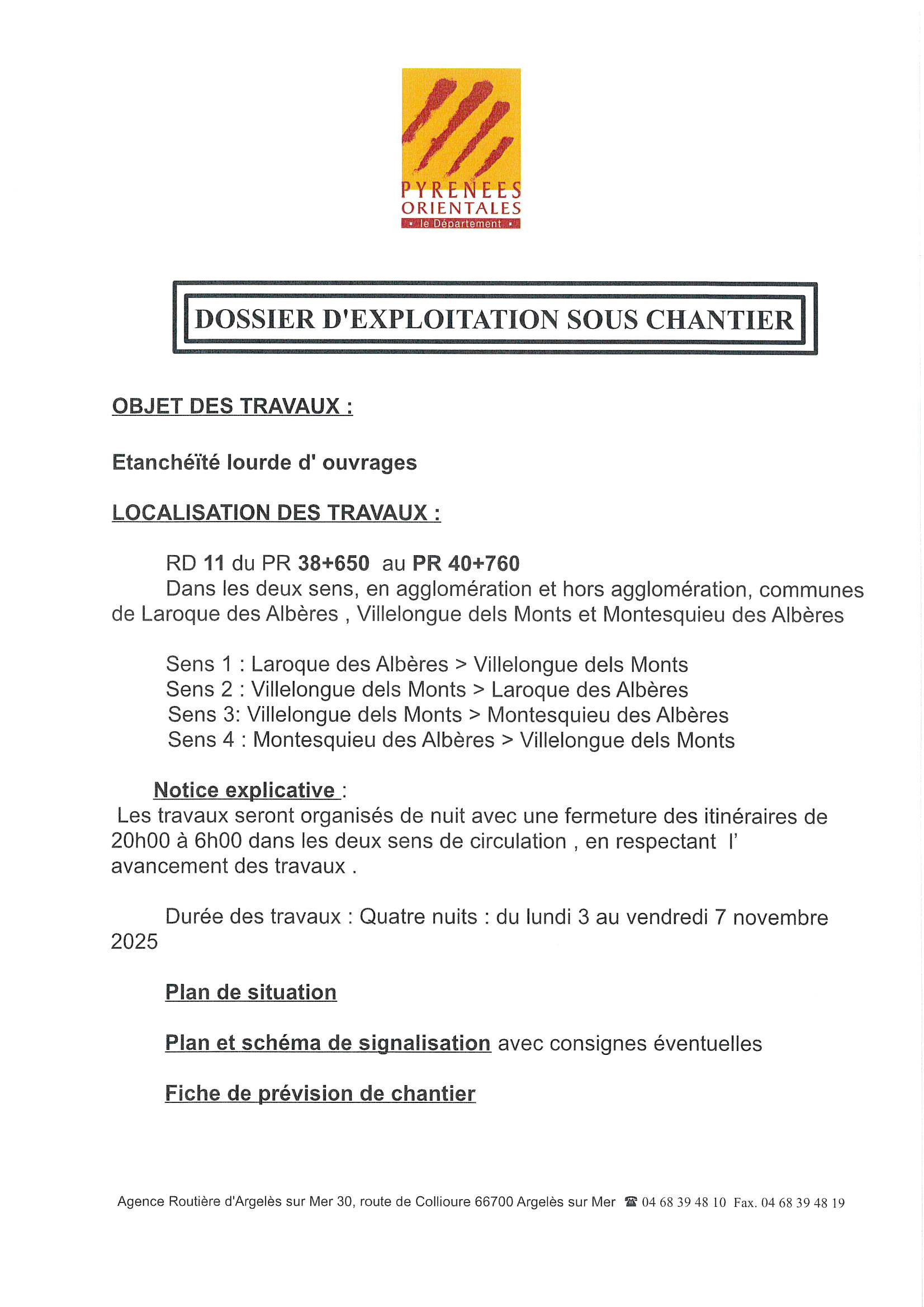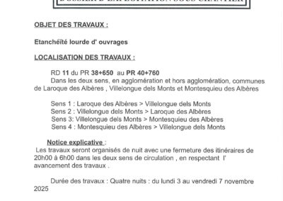 Durée des travaux : Quatre nuits (de 20h à 6h) : du lundi 3 au vendredi 7 novembre 2025